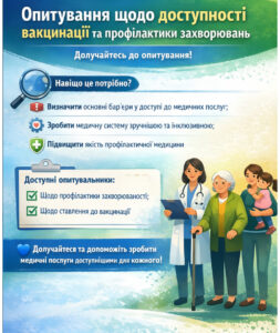 Чи справді медичні послуги в Україні зручні та доступні для всіх? Саме ви можете вплинути на відповідь. Запрошуємо долучитися до опитування щодо доступності послуг з