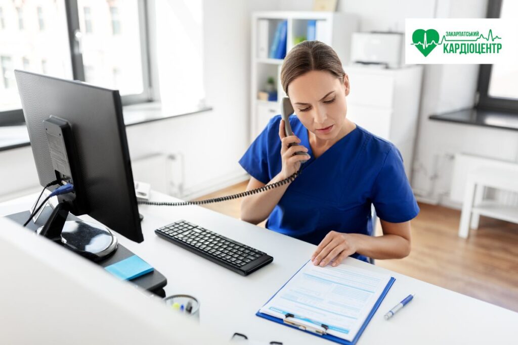 2. Запис на прийом через реєстратуру Закарпатського кардіоцентру за телефоном: +38 (066) 596-85-75.